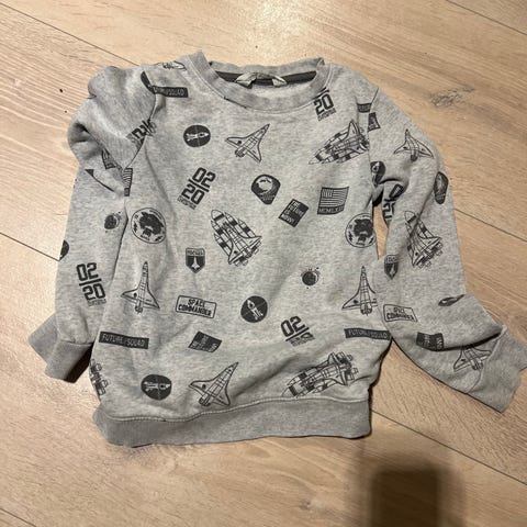 Zara genser for gutt i størrelse 128. Genseren er grønn og laget i bomull. Den har rund hals, lange ermer og ribbekanter nederst og ved ermene. Foran er det et stort motiv med hodeskalle. Passer til hverdagsbruk og kan brukes alene eller over en T-skjorte.