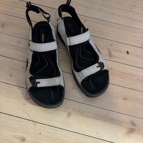 Sandalene er i en lys beige farge med justerbare borrelåsremmer over fot og rundt ankel for bedre passform. Sålen har mønster med god gripeevne. Egner seg til hverdagsbruk og turer i varmt vær.