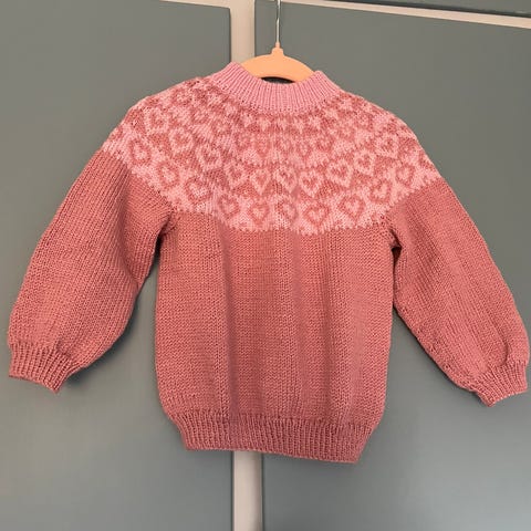 En nydelig håndstrikket hjertegenser til en jente ca 1,5 - 2 år