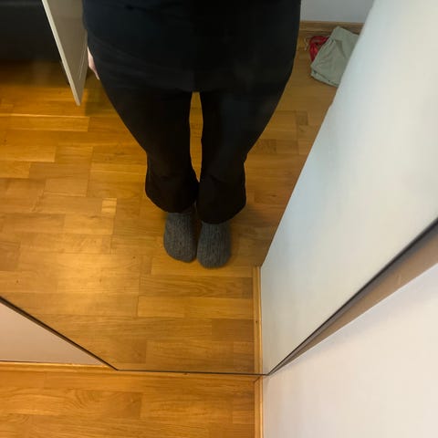 Jeg bruker vanligvis str. L i bukser, men denne passer meg fint. Lengden passer perfekt på meg som er 172cm.