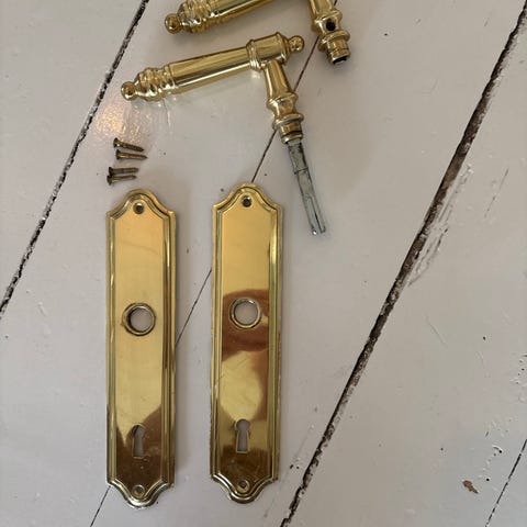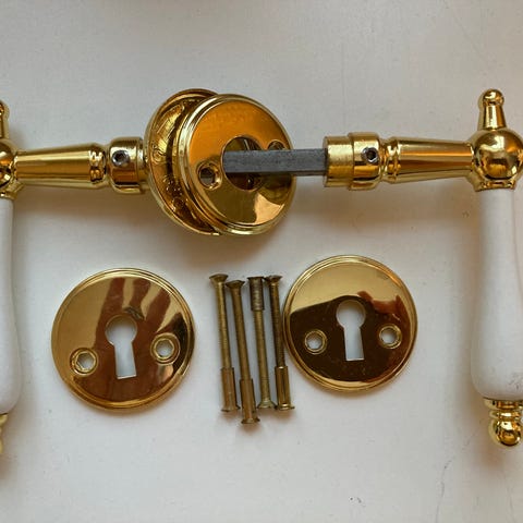 Messing dørvrider med hvitt håndtak