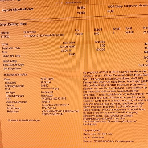 Varen sendes til deg, og du har 24 timer til å inspisere den før pengene overføres til selgeren.