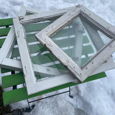 Vinduet må hentes her. Er ikke vinduet hentet innen snøen blir borte og jeg får frem tilhengeren min så blir det kjørt på dynga.
