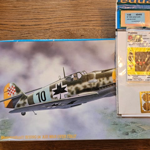 Hobbycraft 1/48 Curtiss Tomahawk Mk.II plastbyggesett m/resin detaljsett og maske selges. Vedlig slitt eske. Deler forseglet.
