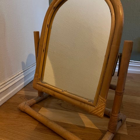 Selger et flott og dekorativt bambusspeil i klassisk sunburst-design. Speilet er kjøpt på Hadeland Glassverk og har et naturlig og varmt uttrykk som passer godt i stue, gang eller over en skjenk. Et blikkfang på veggen!