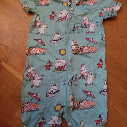 Blå pysj med Mummimotiv i str 62. Lite og pent brukt.