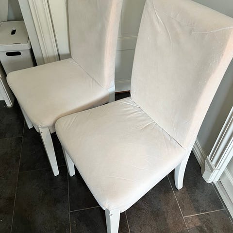 Har 6 spisestoler trekken kan tas av for å vaskes noen av trekket er litt blekk selges 150kr per stol eller 800kr for alle.