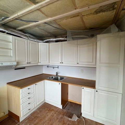 Alt gis bort, inkl hvitevarer. Må demonteres og hentes av kjøper. Må hentes senest 2.April.