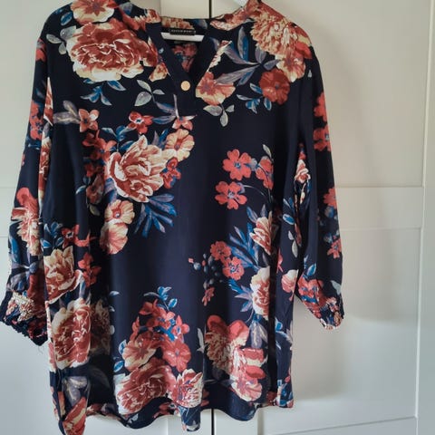 Blusen er flerfarget med blomsterprint og har lange ermer. Den er laget i polyester, som gir et lett og luftig uttrykk.
