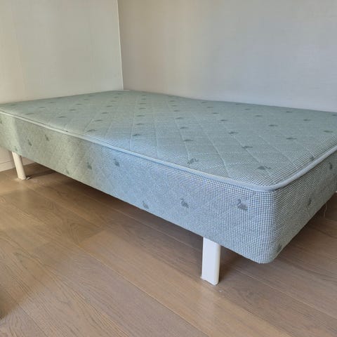 Svane rammemadrass med sokkel selges. Har hele tiden vært brukt med overmadrass. Løs gavel.