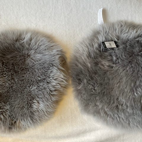 Pent brukte Krølle lammeskinn sittelapper 4 stykker fra Europris selges samlet for 200 kr. Røyk- og dyrefritt hjem. Nypris: 149 kr/ stykk.