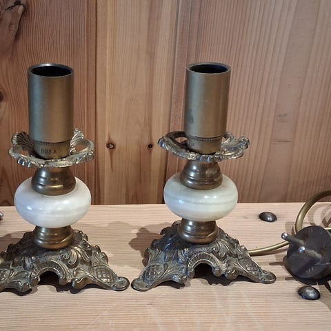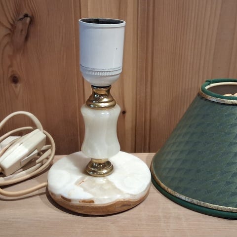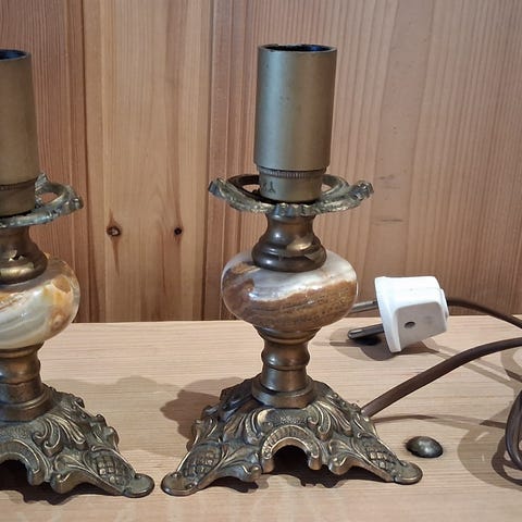 33cm høy målt med lampeholder. Et nag øverst på kanten. Ellers en meget fin og dekorativ lampe. Sokkel 12cm dia. Tung og solid. Vintage.