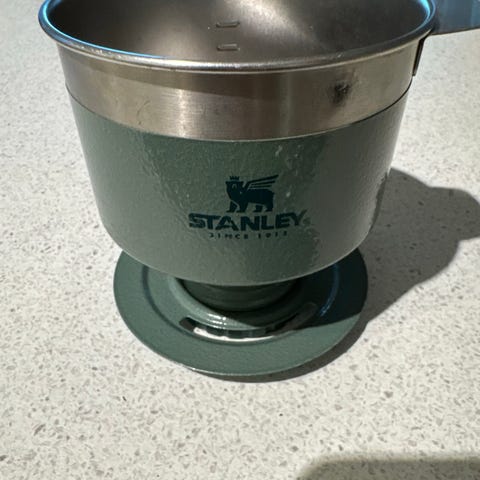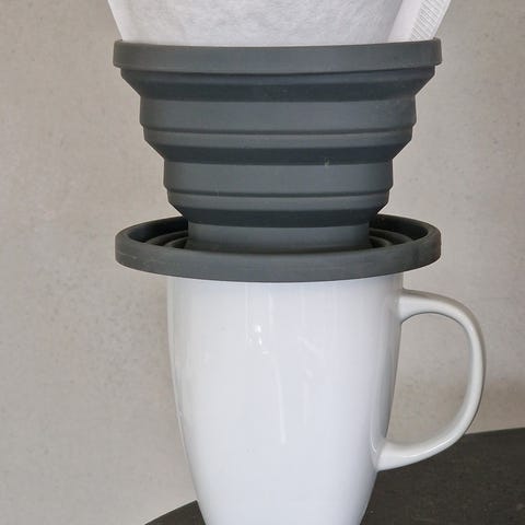 Artig liten sak for den som liker filterkaffe på turen. Den har blitt brukt en gang, men jeg er en kokekaffegutt. Så derav blir den solgt.