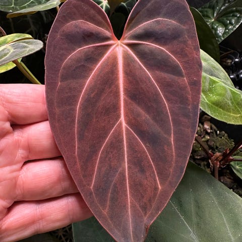 Stikling av Hoya sp Gunung Gading med påbegynt roting. En spesiell Hoya med svært dekorative blader, som blir burgunder i sterkt lys.