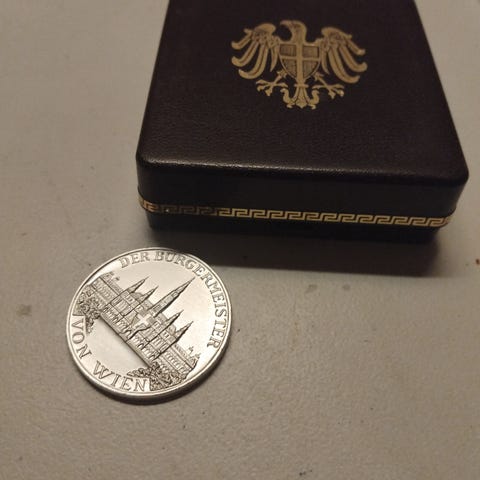 Mynt i plast kassette i original eske fra Eva 's Guld og Silver Kungsgate 7 Åmål.