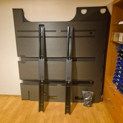 Mangler feste vinkler. Stått montert i en 2007 Modell med høyt tak. Mulig den passer i Vw Crafter også.