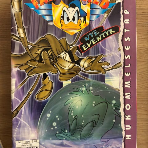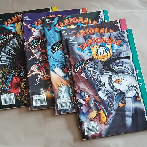 Disney Fantonald tegneserieblader. Samling med flere hefter med ulike historier om Fantonald, merket «Nye eventyr» på forsiden. Heftene har fargerike omslag med motiver fra serien og er i norsk utgave. Egner seg for lesing, samling eller som tillegg til eksisterende Donald-tegneseriesamling. Kr 20 pr stk eller kr 200 for alle