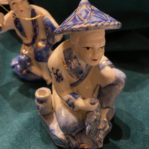 Porselen fisk figur blå og hvit