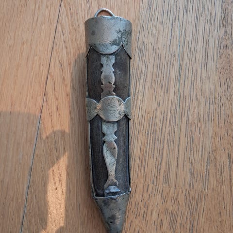 Totalt ca 19,5 cm, blad 8,8 cm.