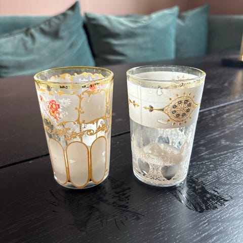 Når du setter telys i dem, skapes et spill av varme refleksjoner i både gull- og honningtoner.