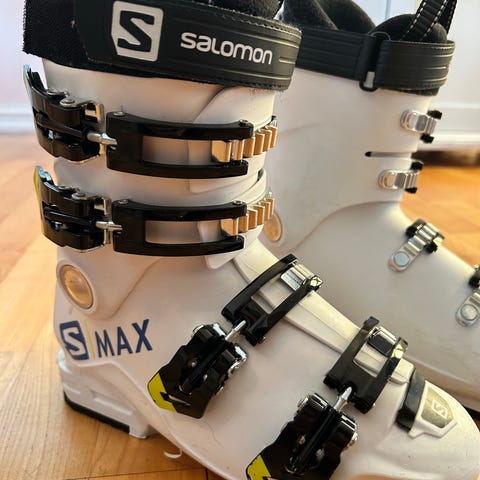 Modellen har fire justerbare aluminiums-spenner med mikrojustering og powerstrap øverst for bedre tilpasning rundt leggen.