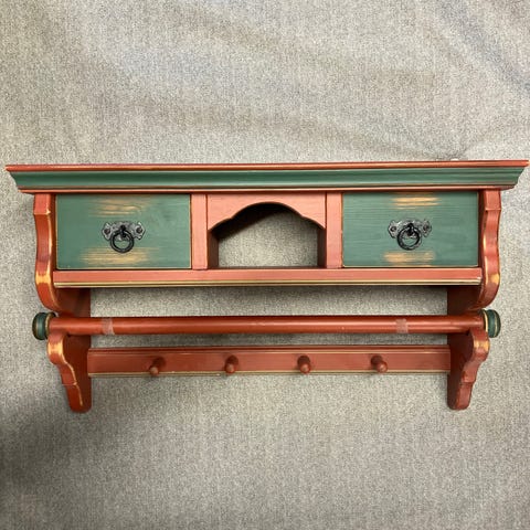 Solid og stødig. Normal bruksslitasje, men i god stand (se bilder). Enkel å henge opp – oppheng på baksiden