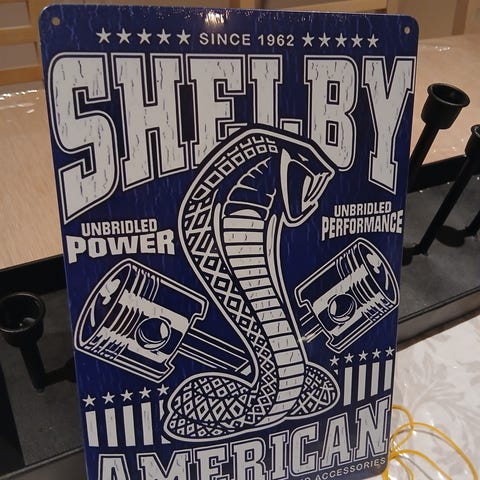 Shelby Cobra metallskilt retro repro selges