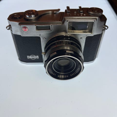 Et kamera som i hvert fall er pent å se på. Utover det har det ligget ubrukt i en del år. Jeg har gjort en enkel test av fremtrekk, utløser og tilbakespoling, der dette for meg ser ut til å fungere. Men om absolutt alt fungerer, det vet jeg ikke.