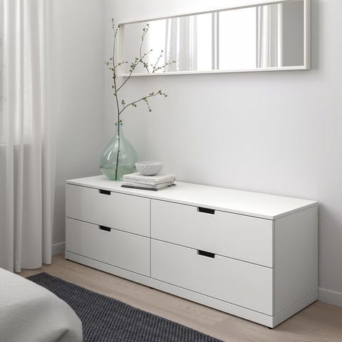 IKEA kommode med 6 skuffer i mørkebrun utførelse. Kommoden har rektangulær form og er beregnet for oppbevaring av klær, tekstiler eller andre mindre gjenstander. Skuffene gir god oversikt og er egnet til bruk på soverom, gang eller stue. Målene fremgår av tegningen i annonsen, med total bredde på ca. 140 cm, dybde ca. 40 cm og høyde ca. 72 cm.