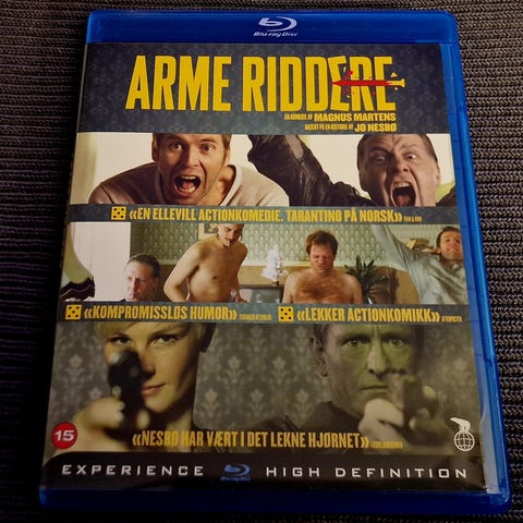 Arme riddere Blu-ray film. Norsk spillefilm i sjangeren action/komedie. Utgivelsen er på Blu-ray-format med høyoppløselig bilde og norsk tale. Aldersgrense 15 år ifølge omslaget. Egner seg for avspilling på Blu-ray-spillere som støtter region B/2, slik det er angitt på coveret.