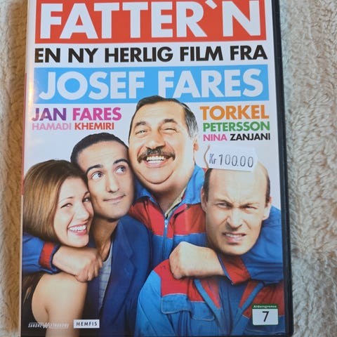 Fatter’n DVD film. Komedie regissert av Josef Fares, med blant andre Jan Fares, Torkel Petersson og Nina Zanjani i rollene. Aldersgrense 7 år. Standard DVD-format med omslag på skandinavisk språk. Passer for avspilling på DVD-spillere som støtter region 2/Pal (europeisk standard).