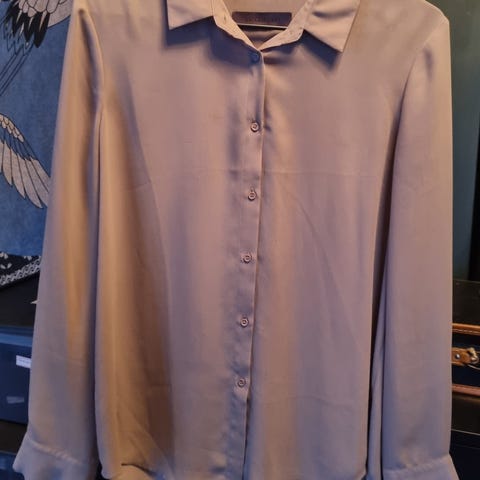 Skjorten er pent brukt. Den har en liten, prikk på venstre erme (se bilde 5), men kan ellers ikke se noen skader eller merker.