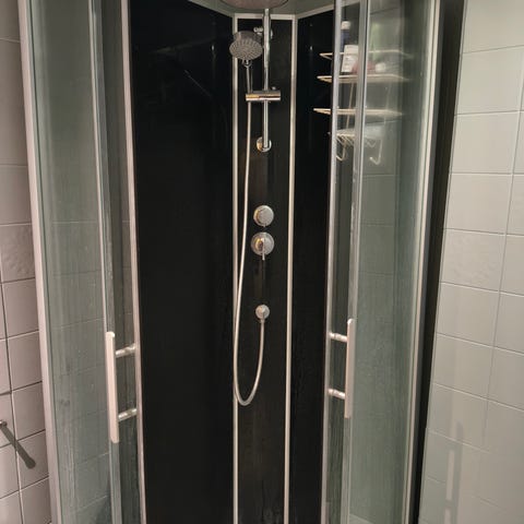 Selger et godt brukt Porsgrunn Showerama dusjkabinett 90x90. Høyde 226 cm. Har stått i hybel og blitt demontert av tidligere leietaker før renovering. Termostaten ble byttet for ca 2 år siden.