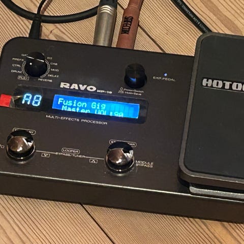 Valeton GP-200 multieffektprosessor for gitar. Enheten er et digitalt gitarutstyr med innebygde effekter, forsterkersimuleringer og kabinettmodeller. Plastikk på skjerm fremdeles på - så du kan få nytelsen av å rive av. Følger med noen Ownhammer Ir.