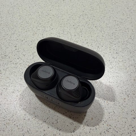 Jabra trådløse ørepropper i svart med ladeetui. Øreproppene leveres med kompakt etui som fungerer som ladestasjon. Passer til bruk med kompatible mobiltelefoner, nettbrett og andre enheter som støtter trådløs tilkobling. Egnet til daglig bruk, pendling og annen mobil lytting.