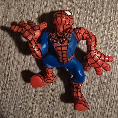 Opprinnelse: Den ble utgitt i forbindelse med ulike lekesett, som "Web of Steel"-serien eller som en del av "Spider-Man: The Animated Series"-merchandise. Noen kilder knytter også lignende små figurer til kampanjer hos McDonald's i 1995