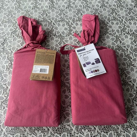 Aldri vært brukt. Den ene lengden fortsatt I orginalemballasjen. I lekker lilla/lyng farge.