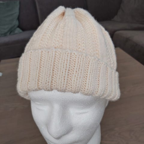Nydelig håndstrikket herrelue. Ullen er myk, men tykk. Ny og morsom stil. Kan også brukes av en dame.