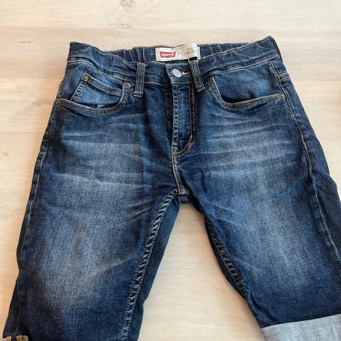 Levi's 511 shorts for gutt i størrelse 158. Denimshorts i blå bomull med klassisk 5-lommers design og knapp/glidelåslukking foran. Strikk og justerbar linning bak for bedre passform. Materiale i hovedsak bomull, med typisk jeansdetaljering som kontrastsømmer og baklommer med logoetikett.