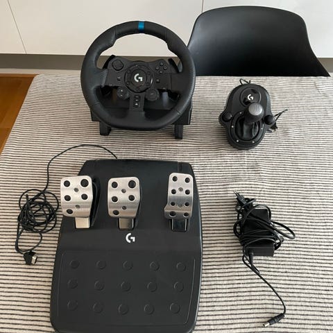 Et logitech g29 ratt og pedaler for bil spill. Rattet fungerer helt fint, men mangler bare en strømforsyning kabel. Jeg selger rattet siden jeg ikke bruker det lengre.