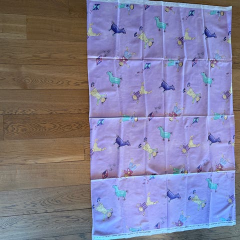 Selger 5 matchende stykker bomullsstoff fra Prestigious Textiles, alle med samme lekne barnemotiv, men i ulike farger. Perfekt til barnerom – gardiner, puter, sengetepper, veggtekstiler eller kreative syprosjekter.
