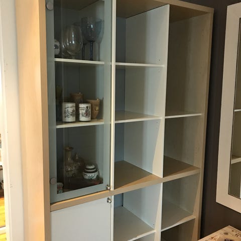 Skjenk i lys eik, med glassdører og to skuffer selges. 3 glasshyller som kan endres i høyde. Hentes snarest, pris kan diskuteres