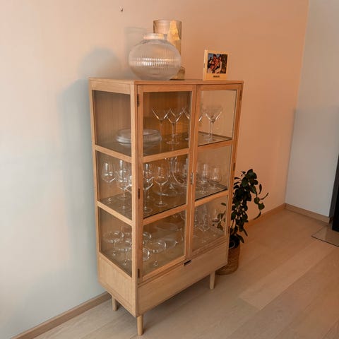 Vitrineskap lys eik hentes snarest