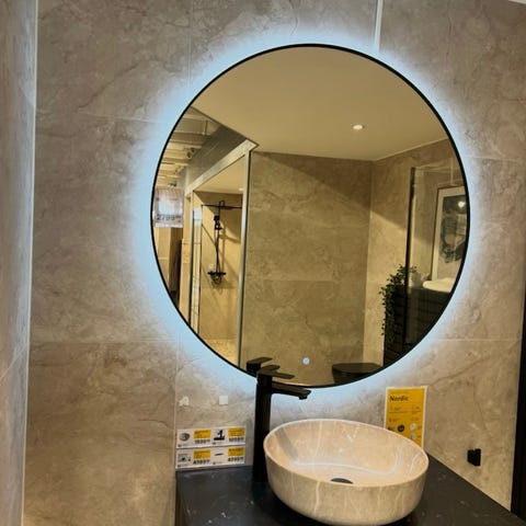 Eksklusivt rundt speil i meget høy kvalitet selges. 4 stk er tilgjengelige. Det brune på speilet er treverk og sammen med speilplatene i den dekorative rammen gir det et skikkelig luksuriøst og elegant uttrykk. Speilet er Ø90 cm og fungerer perfekt som et blikkfang på veggen, uansett om du vil ha det i stue, gang, soverom eller bad. Designet passer lett inn i ulike interiørstiler og farger, og gir rommet en større og mer “exclusive” følelse med en gang. Dette er et solid og gjennomført speil som ser enda finere ut i virkeligheten.