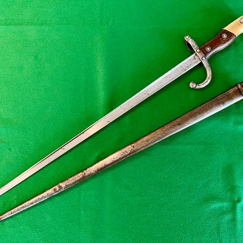 Klassisk sabelbajonett til Remington geværet produsert ved Kongsberg våpenfabrikk. Velfungerende mekanisme og ingen aktiv rust.