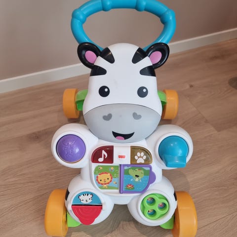 Mattel zebra gåvogn. Stabil. Lyd og lys og diverse leker på fronten. Lyd/lys kan slås av og på og har to lydnivåer.