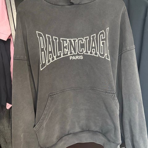 Balenciaga genser for herre i størrelse M. Genseren er laget i bomull og har beige farge. Klassisk rund hals og lange ermer. Balenciaga-logo foran på brystet og stor logo på ryggen. Passer til hverdagsbruk og kan kombineres med både jeans og joggebukse.