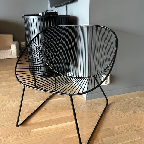 Stolen er både lett og komfortabel, og passer fint i stue, gang, soverom eller på en overbygd balkong. Må hentes.