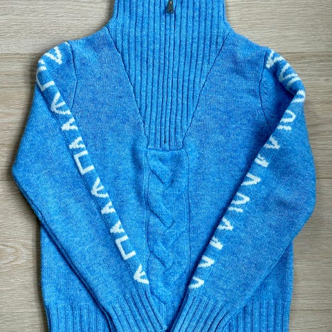 Solsiden Strikkegenser til jente er en god og varm strikkegenser med fine flettedetaljer foran.