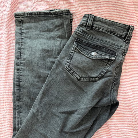 Kul Gina Tricot front pocket bootcut jeans i str. 34 (passer også S), med normal lengde (passer meg fint som er 161 cm), har god stretch, og kun brukt en gang. Utsolgt på nettsiden, nypris 499,-🩶